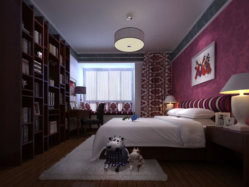 中式的字畫點(diǎn)綴于臥室床頭背景墻上,富有品味。