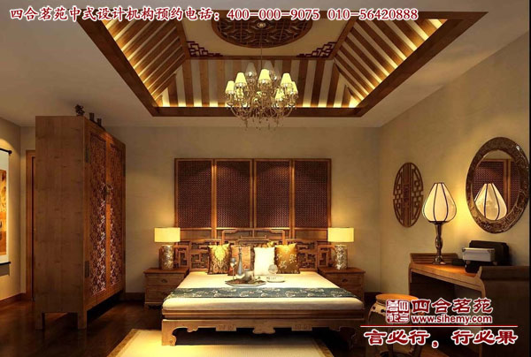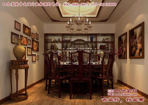 中式吊頂和家具使整個(gè)空間都散發(fā)著濃濃的中式味,加上字畫和一些配飾的烘托更能凸顯出中式的高檔。